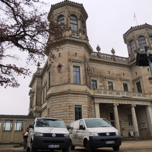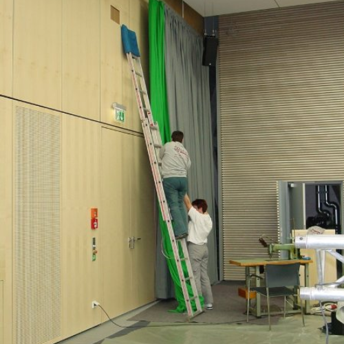 TU-Rektorat Dresden, Anfertigung von Gardinen und Vorhängen passend zum Ambiente | Festsaal des Stadtmuseum Dresden, Ausstattung mit dekorativer Fenstergestaltung und Verdunklungsvorhängen | Anfertigung von Bühnenvorhängen, hier im Lingnerschloss Dresden | Bühnenvorhang, Anfertigung und Montage, genaues Ablängen, mit transportabler Nähmaschine vor Ort |