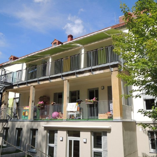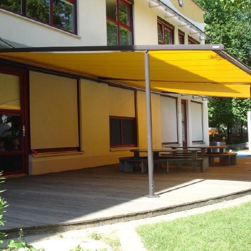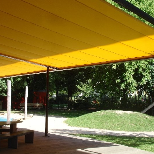 Ausstattung dieses Kindergartens mit Vorhängen, Rollos und Markisen | Markisenanlagen in einem Kindergarten | Markisenanlagen in einem Kindergarten | Ausstattung dieses Kindergartens mit Sonnenschutz und Vorhängen |