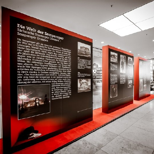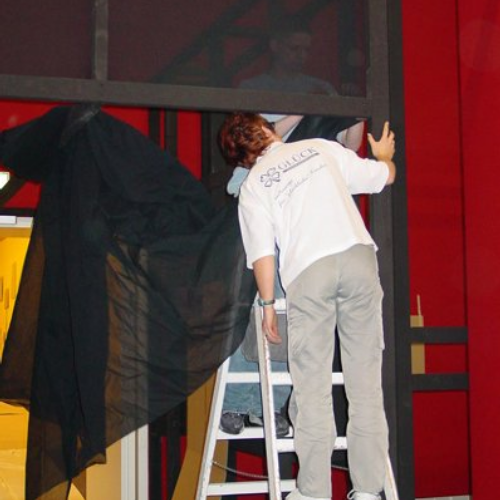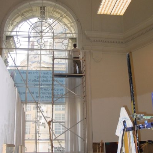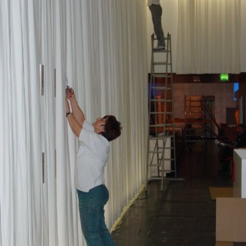 Altmarktgalerie Dresden | Terra Mineralia, Freiberg | Hochschule Bildende Künste Lipsiusbau | hier Montagearbeiten für Vorhänge in "luftiger" Höhe |