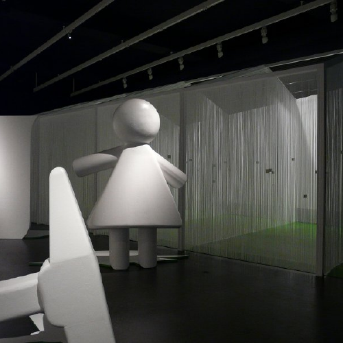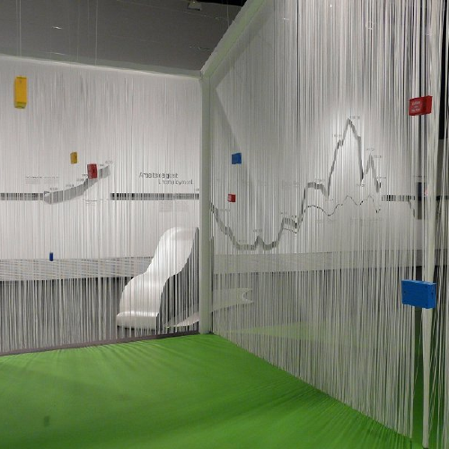 Hygienemuseum Dresden | Ausstatung mehrerer Austellungen mit Wand und Deckenbespannungen | Ausstellungsraum fertig | hier ein spezieller Vorhang, kreisrund mit passend gebogener Aluschiene |