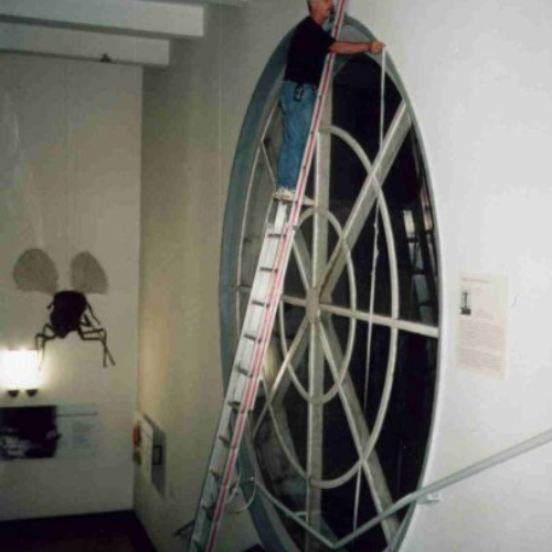 Ausstellung | Ausstellung | Außensonnenschutz, hier Sonnenschutzmarkisen am Kindermuseum des Hygienemuseum Dresden | Anfertigung einer Bespannung mit Dekorationsstoff an einem runden Fenster |