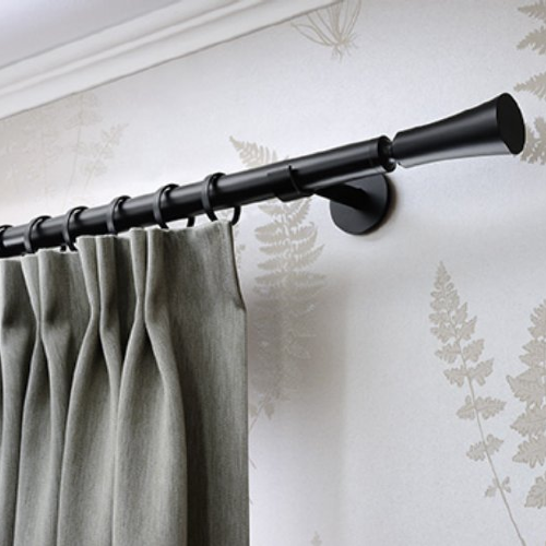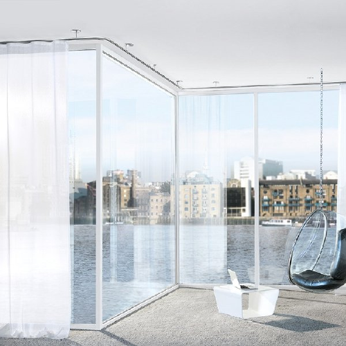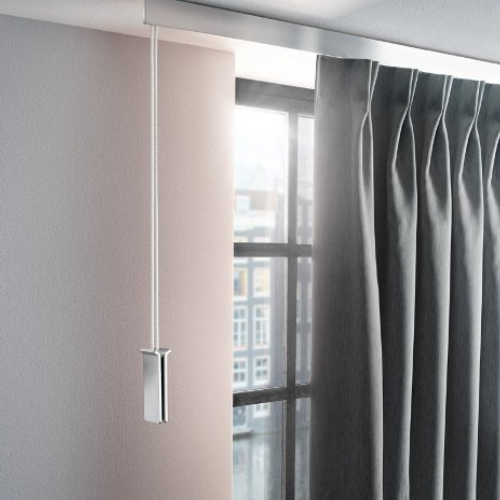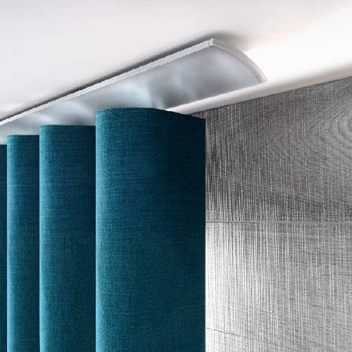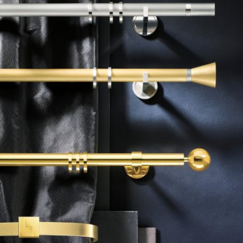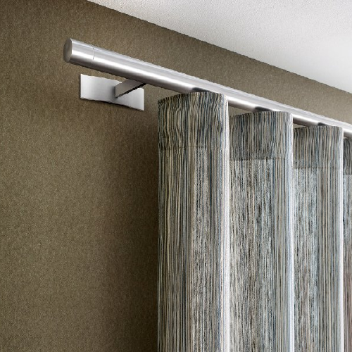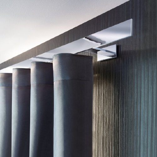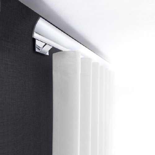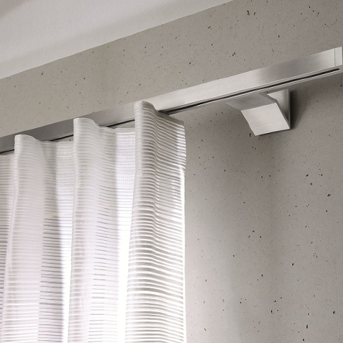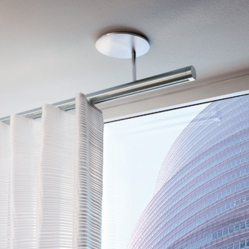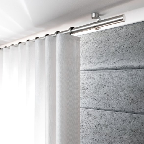 Stoff und Technik als formale Einheit. Textile Wohnkultur perfekt inszeniert mit Vorhangstangen von Interstil.