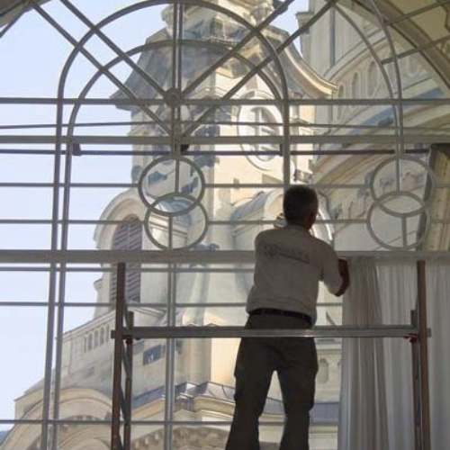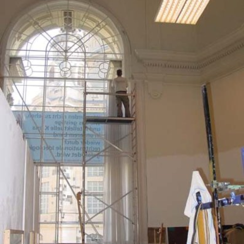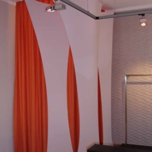 Zu unserem Leistungsprogramm gehört auch die Ausstattung von Räumen mit besonderen Anforderungen, | hier die Montage von Gardinenlaufeinrichtungen und Vorhängen in 8 Meter Höhe in der Kunstakademie Dresden | Lieferung und Montage von Gardinenlaufeinrichtungen und Vorhängen für gehobene Ausstattungswünsche | Anfertigung und Montage einer Wandbespannung im Wartebereich eines Softwareunternehmens |