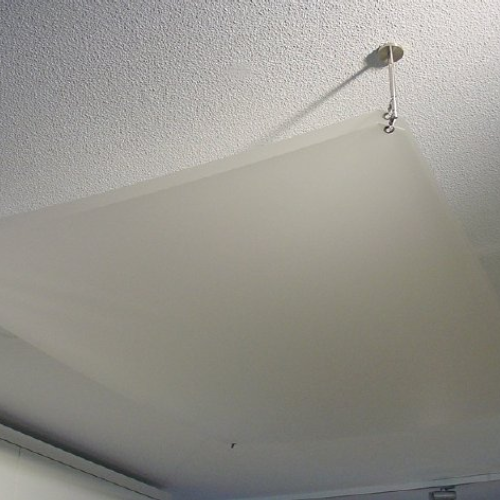 abgehängte Akustiksegel in einem Büro | Akustiksegellösung mit doppellagiger Microsorberfolie |